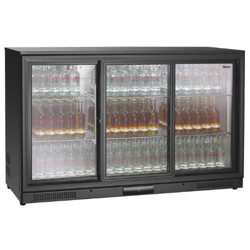 Barkjøleskapet med kapasitet på 270 liter, innvendig belysning og tre doble, selvlukkende skyvedører avkjøler drinkene dine pålitelig. Den elektroniske kontrollen med digitalt display tillater nøyaktig innstilling av ønsket temperatur.