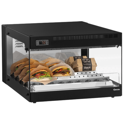 En game changer for rushtiden ved snacks – dette oppvarmede vitrineskapet holder snacks varme og enkle å servere. LED-belysningen trekker kundene til de varme snacksene og oppmuntrer til salg.