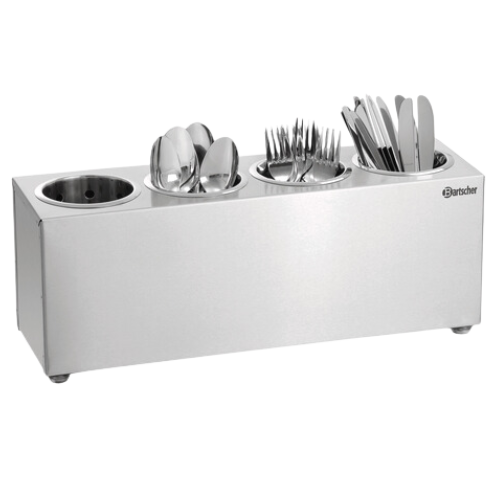 Denne bestikkholderen er perfekt for kantiner, buffeer og selvbetjente områder. Materialkvaliteten og at de valgfrie bestikkgrytene kan tas ut gir perfekte forutsetninger for hygienisk rengjøring.