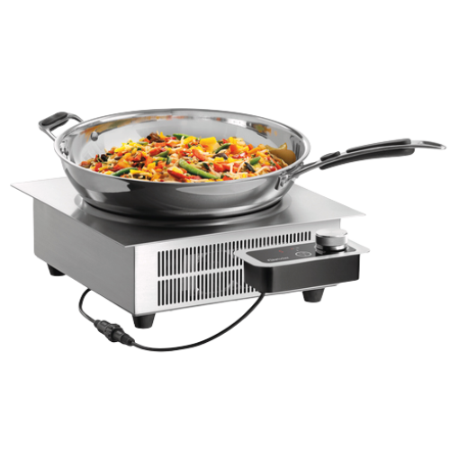 Den integrerte induksjonswoken kan bygges inn i bord og benkeplater, noe som gir optimal arbeidshøyde. Det separate kontrollpanelet muliggjør progressiv kontroll mellom 60 og 240 °C. Alternativt er det 10 effektnivåer tilgjengelig.