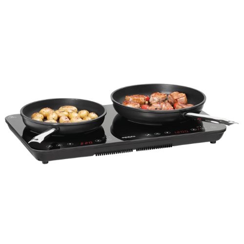 Induksjonskomfyr med 2 kokeplater og en total effekt på 3500 watt, hver med 10 effekttrinn eller 10 temperaturinnstillinger og en brukervennlig sensorberøringskontroll. Den bærbare induksjonskomfyren har timer, kjeledeteksjon og overopphetingsbeskyttelse med automatisk avslåing og tilbyr derfor det høyeste sikkerhetsnivået. De 10 tilberedningsmodusene (Venstre 500-1800 | Høyre 500-1700 W) passer for et bredt spekter av bruksområder i temperaturområdet fra 60 °C til 240 °C og er designet for gryter og pannestørrelser fra 140 mm til 230 mm .