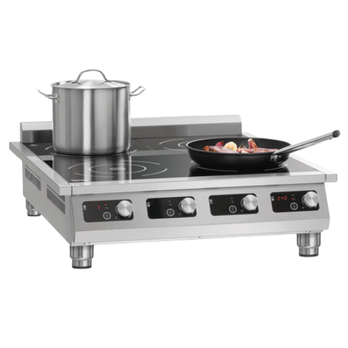 Enten i et kokeområde foran huset eller som en fast del av kjøkkenet, er induksjonskomfyren 4P 50-1 TCK et imponerende bordapparat med elegant optikk og en total effekt på 20 kW. Utstyrt med fire store kokeplater for en grytediameter på opptil 280 mm og med mulighet for å bytte mellom effekttrinn og temperatur, er den et pålitelig kjøkkenhjelpemiddel.