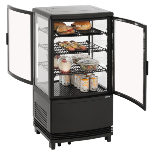 De kompakte kjøleskapene i sort med en kapasitet på 64 liter imponerer med de to glassdørene for enkel fylling og det slitesterke, høyytelsesdesignet.