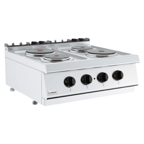Barossi 700-seriens elektriske komfyrer er det ideelle valget for kokker som verdsetter profesjonell ytelse og høy kvalitet. 700-kokeserien er utviklet for profesjonell bruk og imponerer med sin holdbarhet, sikkerhet, effektivitet og høye funksjonalitet. Den er ideell for kafeer, restauranter og hoteller.