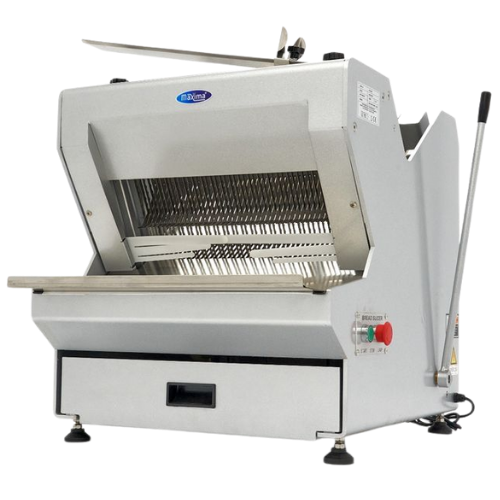 Denne brødskjæreren er laget av belagt stål og er en slitesterk maskin som er designet for å skjære ulike typer brød. Våre brødskjærere er tilgjengelige med forskjellige brødtykkelser. Denne maskinen har taggete kniver i rustfritt stål med 12 mm mellomrom.