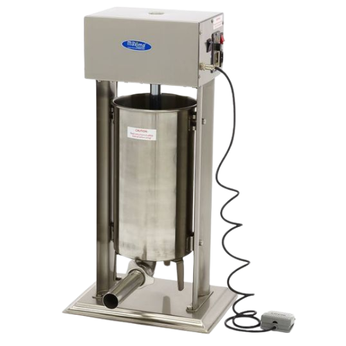 Fyll pølsene dine raskt og effektivt med denne automatiske pølsefylleren med en fyllkapasitet på 15 liter. Denne profesjonelle pølsestapperen er laget utelukkende av rustfritt stål og leveres med fire påfyllingsrør med 16, 22, 32 og 38 mm diameter. Du får også en fotpedal for å betjene pølsefylleren slik at du har hendene fri til å effektivt fylle og snu pølsene. Trykkplaten har hull for utlufting og tettes med tetning. På denne måten kommer minst mulig luft inn i pølsene under rotasjon. Pølsestapperen kan kjøre i ti forskjellige hastigheter slik at du alltid har den riktige hastigheten du trenger for perfekt uttak.