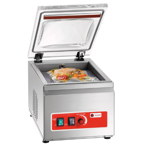 Kraftig og solid kammervakuummaskin med intuitiv kontroll. Vedlagte innsatsplater oppnår høydekompensasjon i kammeret etter behov.