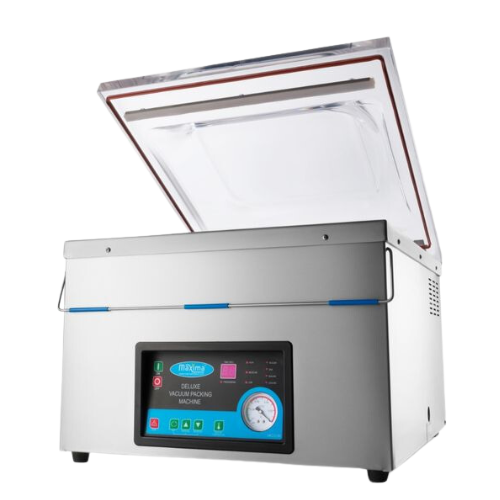 For å unngå at mat går til spille og for å utnytte plassen i kjøleskap og frysere optimalt, er en matpakkemaskin uunnværlig i storkjøkken. Denne profesjonelle vakuumpakkemaskinen er egnet for store vakuumposer opptil 40 x 50 cm. Det er en helautomatisert prosess der vakuumpakkemaskinen produserer lufttette og kompakte pakker. Lufttett forsegling forhindrer fryseforbrenning når produktene fryses. Denne modellen er en ekstra stor versjon som enkelt kan plasseres på en benkeplate eller bord.