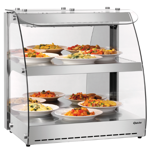 Med den varme displayenheten kan maten holdes varm på to nivåer for å spare plass. Lamper for belysning av hyllene, samt et speil montert på baksiden sørger for en tiltalende presentasjon av maten.