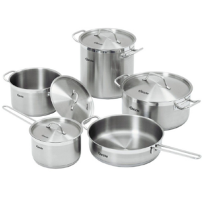 Kasserollesett bestående av 4 gryter med lokk og 1 panne passer for induksjon/gass