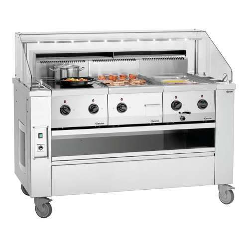 Optimalisert mobil kokestasjon for et profesjonelt utseende i det fremre kokefeltet. Fra en induksjonskomfyr med 230 V til en solid stekeplate i serien 650 med 400 V – Med opptil 3 bordplater ekstremt fleksible innen catering, event og frontmatlaging.