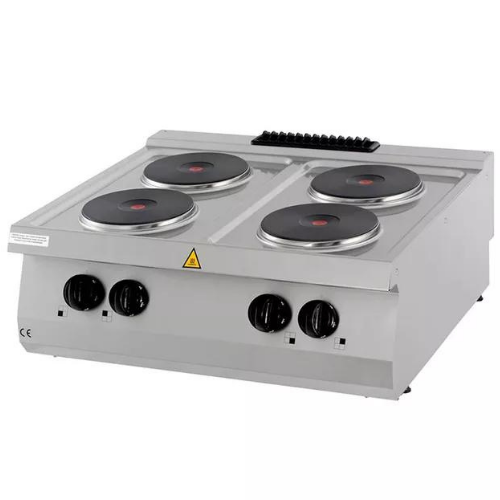 Når kokeapparater brukes svært intensivt til daglig, er det viktig at de tåler juling og holder lenge. Derfor er denne fire-brenners elektriske koketoppen spesialdesignet for travle og store kjøkken i restauranter, lunsjrom og hoteller. Huset er laget av tykt rustfritt stål. Derfor er den robuste og svært holdbare konstruksjonen utmerket for hyppig bruk. Siden denne koketoppen er ganske tung å flytte rundt raskt, kan du bestille en sokkel i rustfritt stål med den.