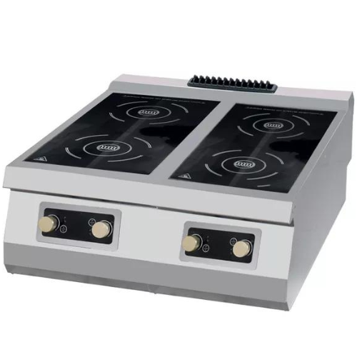 Med denne induksjonskomfyren med fire brennere får du et energieffektivt og robust apparat for inkludering i kokelinjen din. Med den glasskeramiske kokeoverflaten og huset i rustfritt stål er denne induksjonsplaten enkel å rengjøre. Den kan også utvides med åpen sokkel i rustfritt stål eller lukket sokkel som følger med dør. Du kan bestille dette som tilbehør.