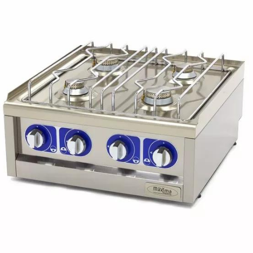 De store dreieknappene er svært brukervennlige og fungerer uavhengig av hverandre. Brennerne er laget av krom for best mulig matlagingsytelse. Du kan bruke denne profesjonelle komfyren med LPG eller naturgass. Komfyren er også tilgjengelig i en 2-brenners modell. En sokkel i rustfritt stål, som komfyren passer perfekt på, kan også bestilles separat.