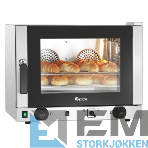 AT230-MDI forenkler lasting av bakekammeret takket være sidedørhengslet. Den oppfyller alle krav siden den kombinerer velprøvde AT-funksjoner med en ekstra grillfunksjon og damping. Den digitale Bartscher MDI-kontrollen sikrer topp brukervennlighet med rask og enkel temperatur- og tidsregulering.