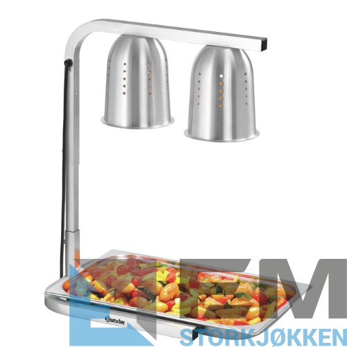 For buffeer, cateringarrangementer og i kantiner – de to varmelampene med ventilerte aluminiumsreflektorer sørger for målrettet varmeavgivelse. Dette gjør at tallerkener i beholdere på opptil 1/1 GN kan holdes varme.