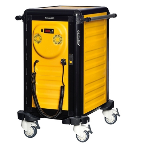 til bankett eller catering, gjør det mulig å bringe kjøkkenet til gjesten. En garantert levering av oppvasken ved en temperatur over 65°C, på grunn av den utmerkede isolasjonen oppnås den ønskede temperaturen raskt og beholdes lenger. Den oppvarmede banketttrallen er laget av dobbeltvegget høykvalitets ABS og har en metallepoksyramme. Banketttrallen er utstyrt med skyvehåndtak, 4 hjul, hvorav 2 har bremser, spiralsnor og justerbar digital termostat fra 65°C til 90°C grader. Versjon for 1/1 gastronormbrett eller -brett