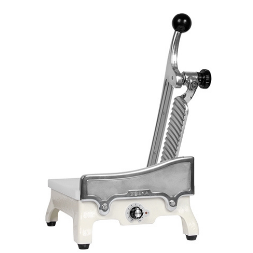 med Unika+ ostekutteren kan du enkelt kutte ostene dine. Takket være den kileformede skjærebevegelsen er det enkelt å skjære opp runde oster og egner seg derfor også til halvharde oster. Å kutte oster er veldig enkelt fordi kniven til Unika+ har et varmeelement med varmeregulering, gamle oster knekker mindre raskt og osten fester seg mindre til kniven. Med dreieknappen på forsiden er tykkelsen på skiven justerbar fra 1 til 15 mm og skjæreplaten er laget av plast og derfor veldig enkel å rengjøre