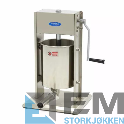 For å lage et stort antall pølser raskt, bruk denne profesjonelle pølsestapperen med en fyllkapasitet på 10 liter. På denne måten slipper du å håndtere bryet med å lage pølser manuelt. Hvis du ikke har mye plass på disken din, så er denne vertikale modellen en flott løsning. Når du bestiller denne robuste pølsestapperen får du fire påfyllingsrør i forskjellige størrelser: 16, 22, 32 og 38 mm. Bare skyv foringsrøret eller det kunstige foringsrøret over påfyllingsrøret. Med trykkplaten trykker du ingrediensene inn i pølsehylsen. Takket være hullet i trykkplaten kommer svært lite luft inn i foringsrøret under prosessen. Videre er trykkplaten pent lukket med tetning. Rask pølsefremstilling er mulig i to forskjellige hastigheter, og takket være den manuelle sveiven har du kontroll over hele fylleprosessen.